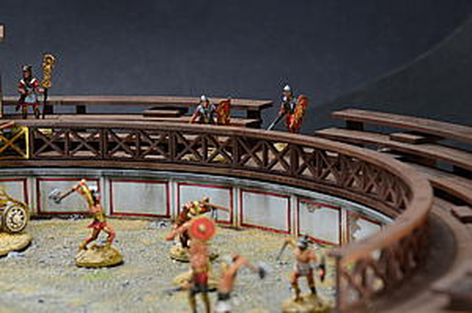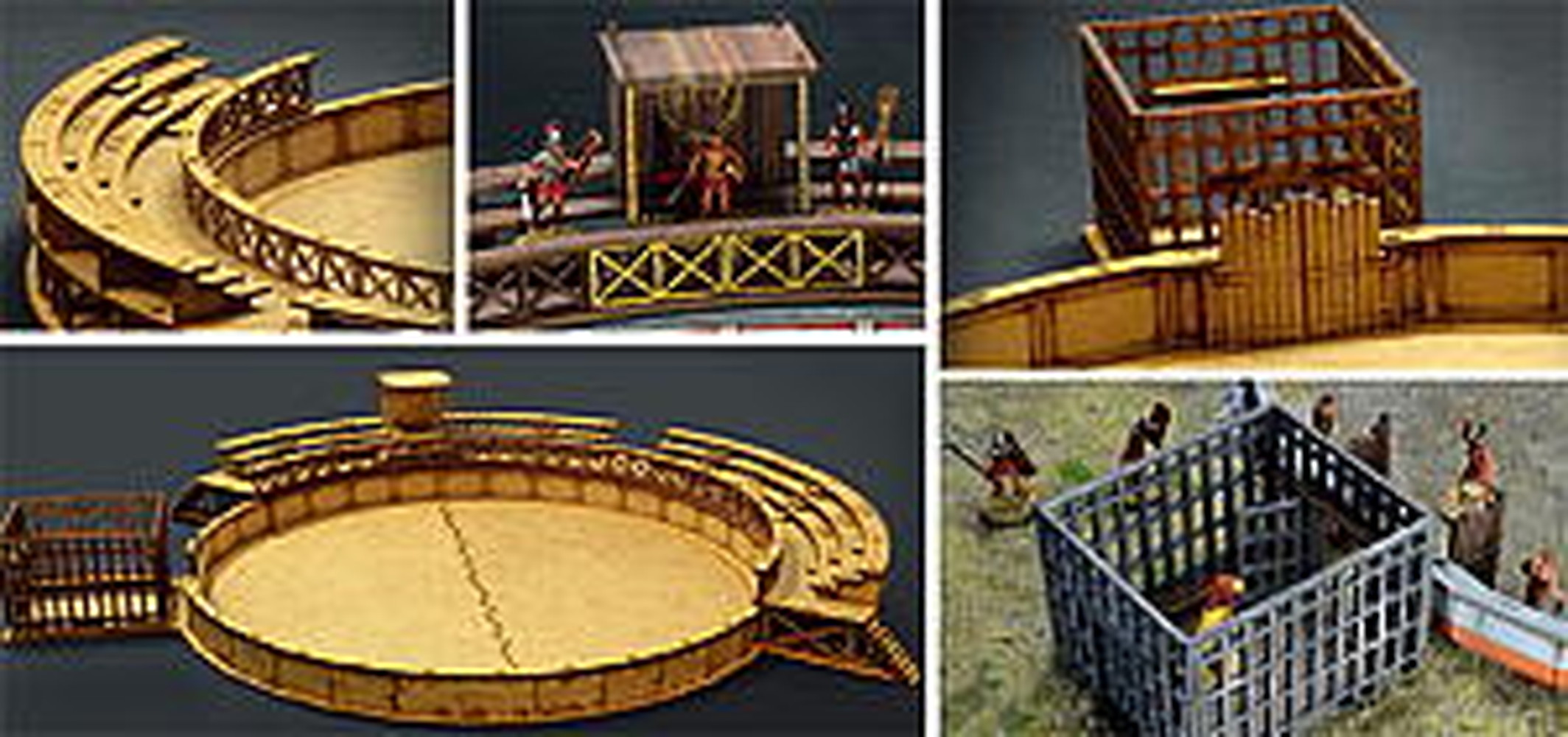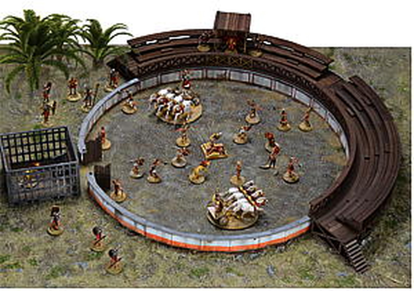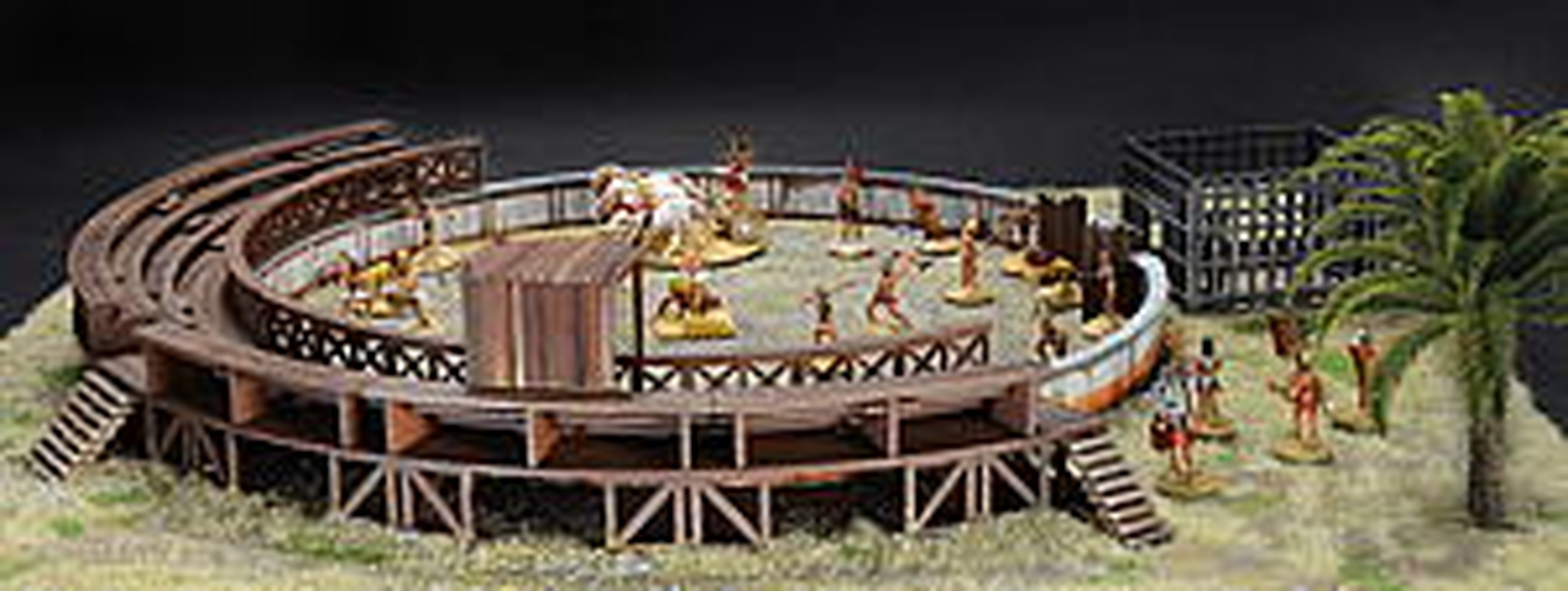 闘技場のフェンスをはじめ、周りを囲む観客席、さらに、猛獣などを入れておく檻など、闘技場のディテールをしっかりと再現しています。