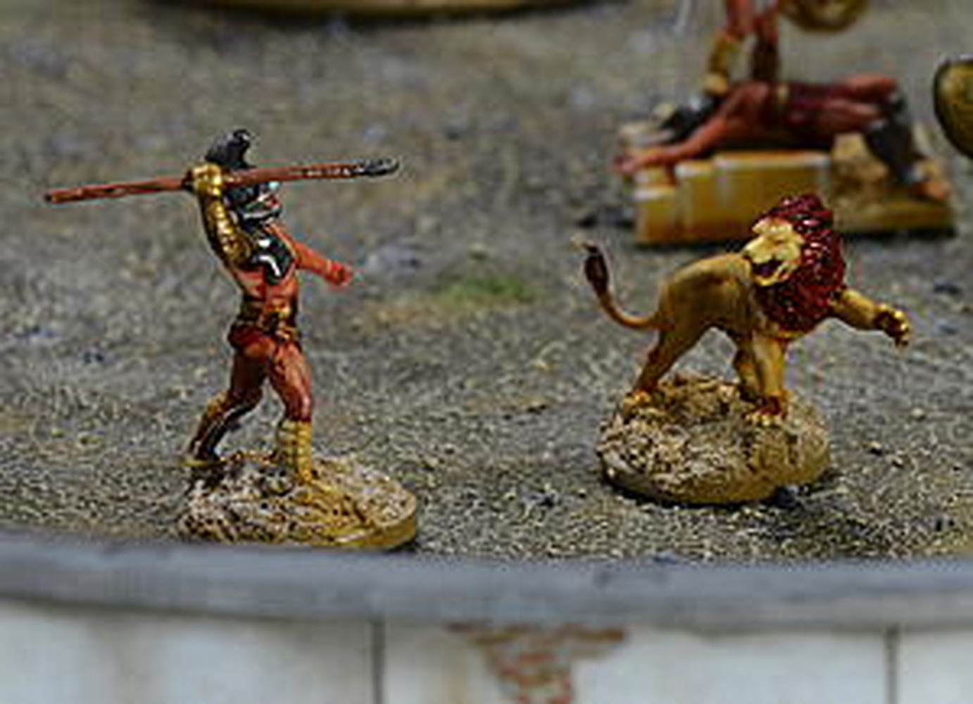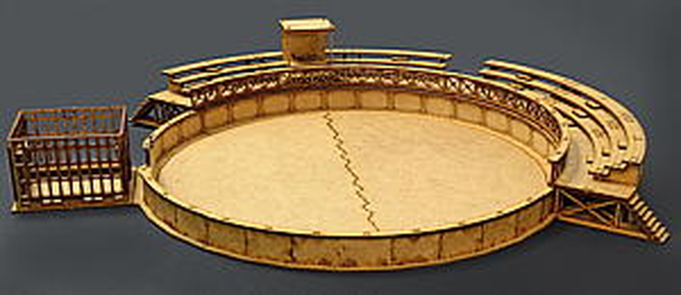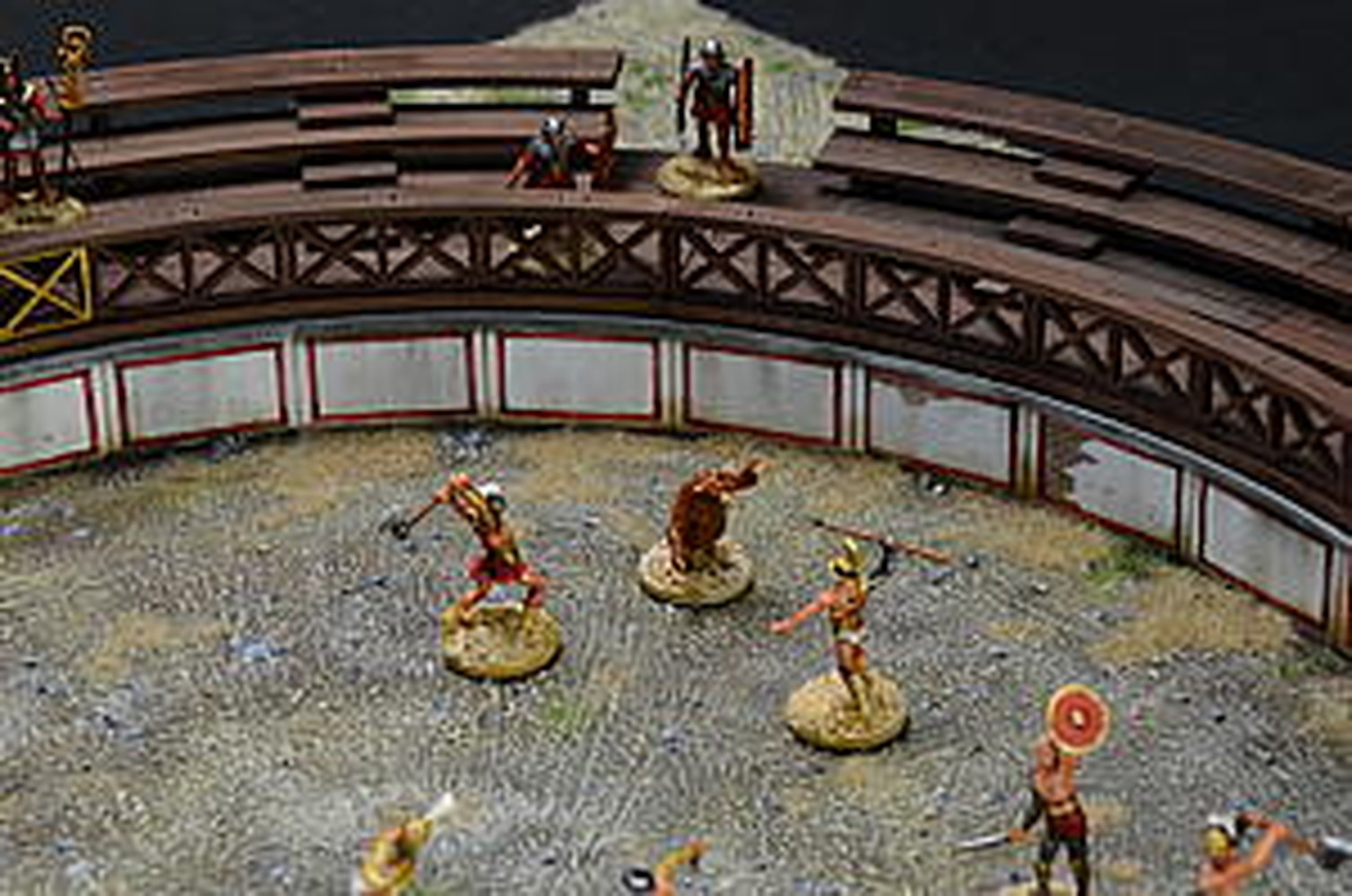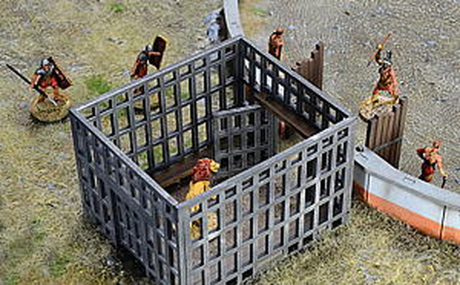 闘技場のフェンスをはじめ、周りを囲む観客席、さらに、猛獣などを入れておく檻など、闘技場のディテールをしっかりと再現しています。