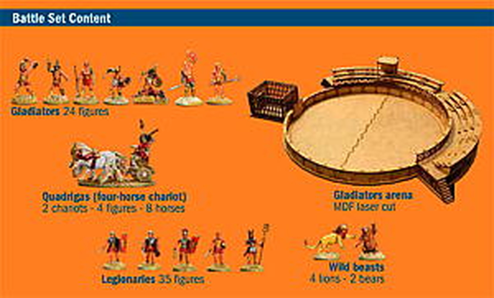 ■1/72スケールでローマの戦士、剣闘士、馬が引く戦車、チャリオット1台、観客、猛獣などもセット