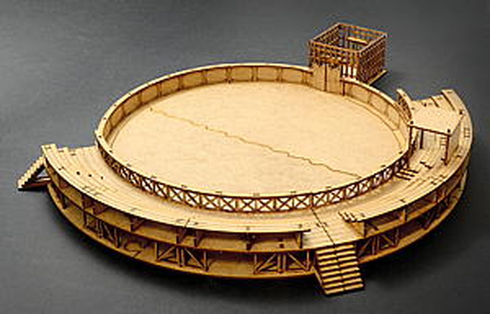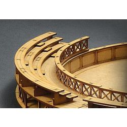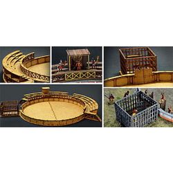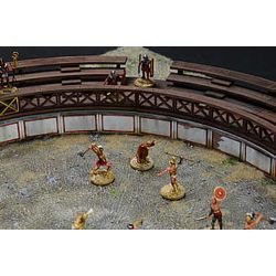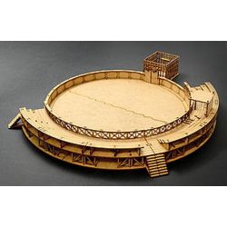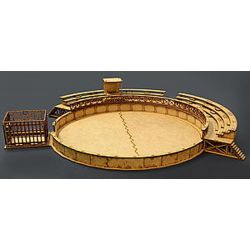 古代ローマ時代に作られた円形闘技場、トレーニングセンターを1/72スケールで再現した組み立てキットです。円形の競技場はMDFと呼ばれる木製の素材で再現。各パーツはレーザーカッターでカット加工済み。仕上がりの直径は最大部分で43cmです。
