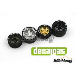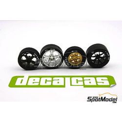 1/24スケールのレーシングカーモデルのタイヤに貼って、リアリティあふれる仕上がりを演出するデカールです。