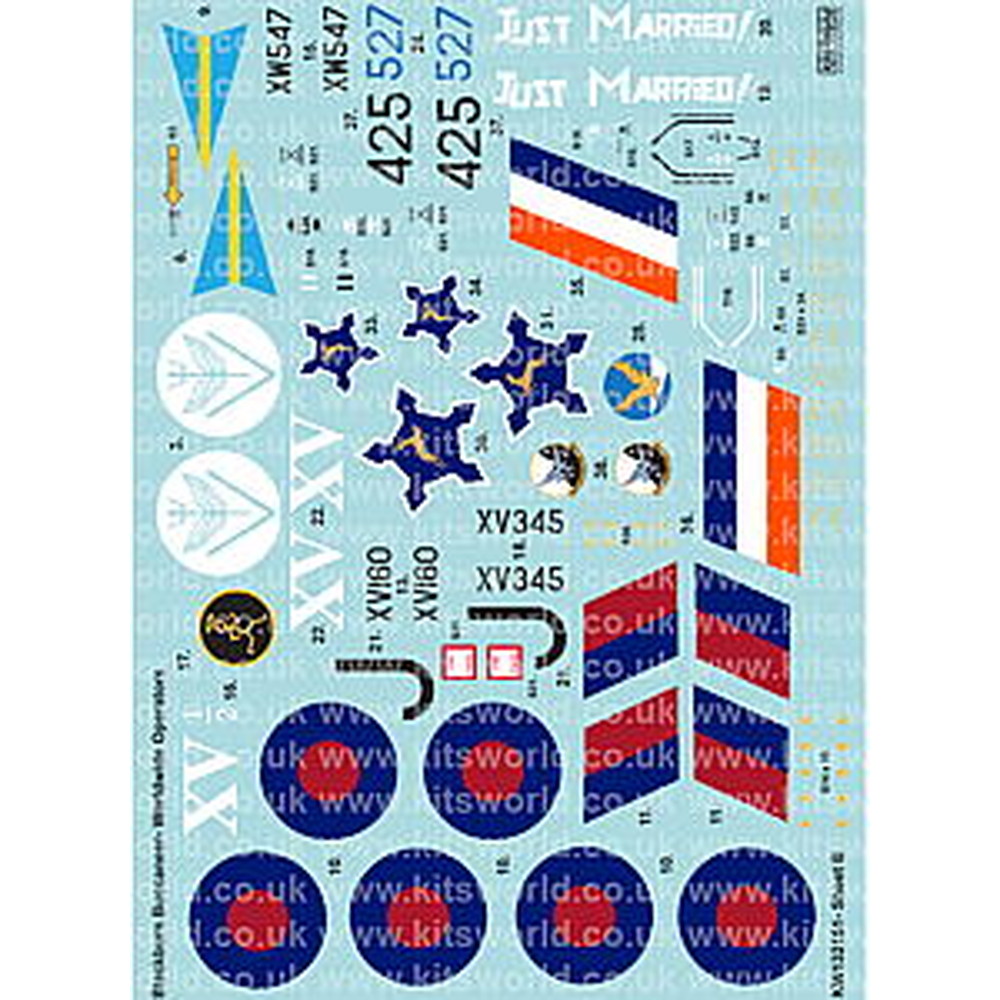 このデカールは1/32スケールのバッカニアのキットに対応したセットです。イギリスのRAFの運用した機体のマーキングのほか、運用国の一つである南アフリカ空軍の機体のマーキングなど、8機のマーキングをセレクトして収録。デカールにはステンシルとデータのマークも用意されています。