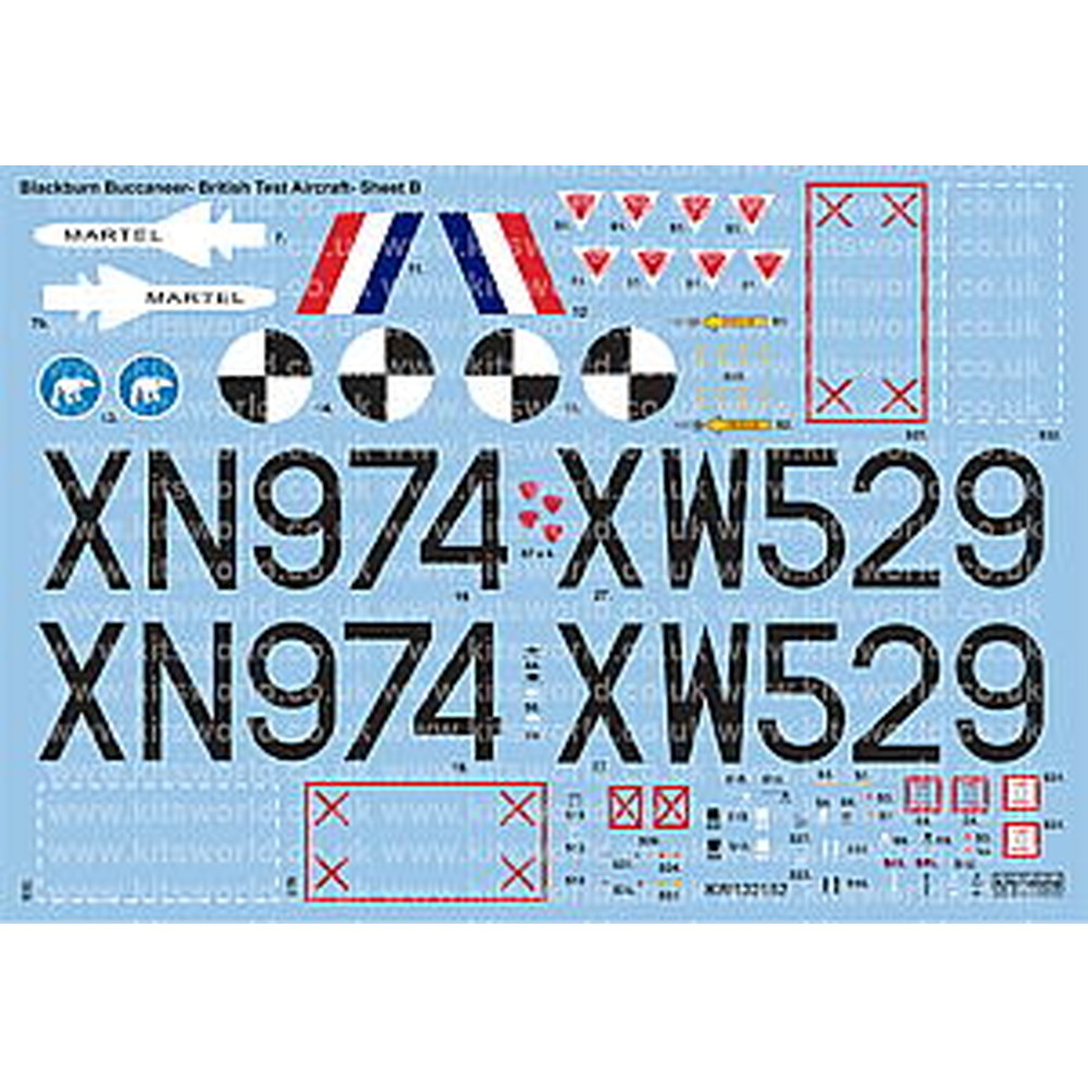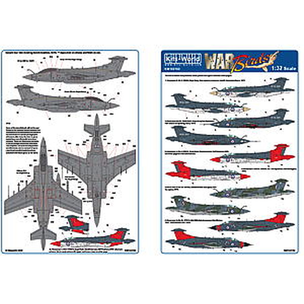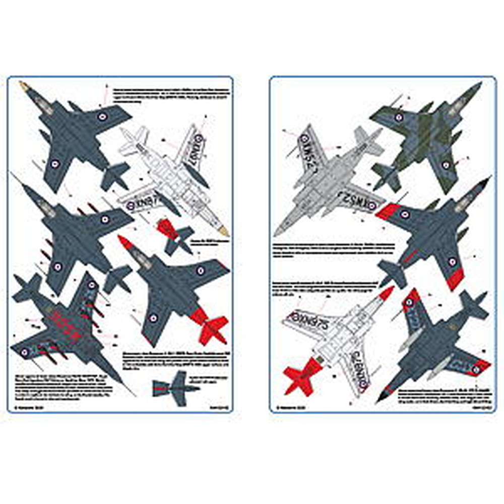 このデカールは1/32スケールのバッカニアのキットに対応したセットです。イギリスの海軍向けに開発されたS.Mk2とそれを空軍で配備したMk.2A、さらにそのバリエーションタイプ、Mk.2Bの各機体から7機の機体のマーキングをセレクトして収録。デカールにはラウンデルをはじめとするマークが用意されています。