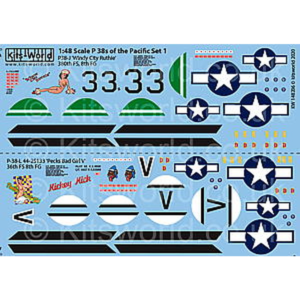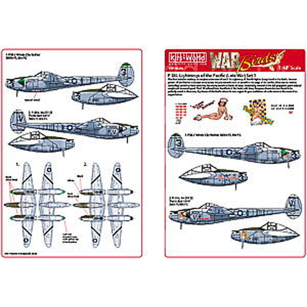 このセットでは大戦後期に太平洋戦域を拠点として活躍した第8戦闘グループの所属機のP-38Lの中から2機をセレクトしてそのマーキングを収録しています。