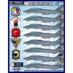 F-14Dトムキャットのマーキングを集めたデカールセットです。VF-2所属機3機、VF-11所属機2機、VF-101所属機1機を収録。さらにテストベッド機として運用されたNF-14Dのマーキングも2機入っています。デカールはカルトグラフ製。