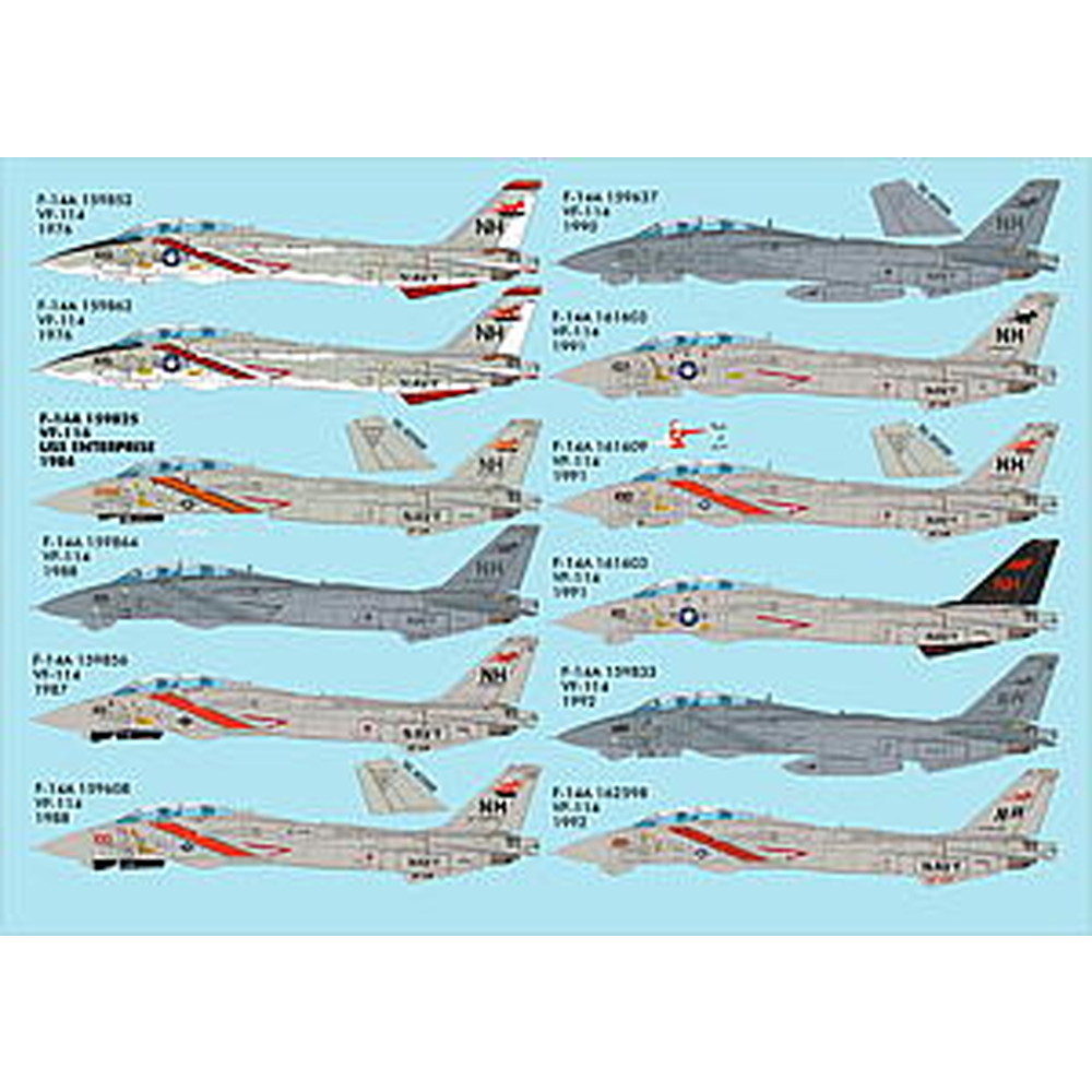 アメリカ海軍VF-114 'アードバークス' のF-14Aトムキャット時代のマーキングを集めました。1970年代から90年代にかけての12機分を収録。デカールはカルトグラフ製。