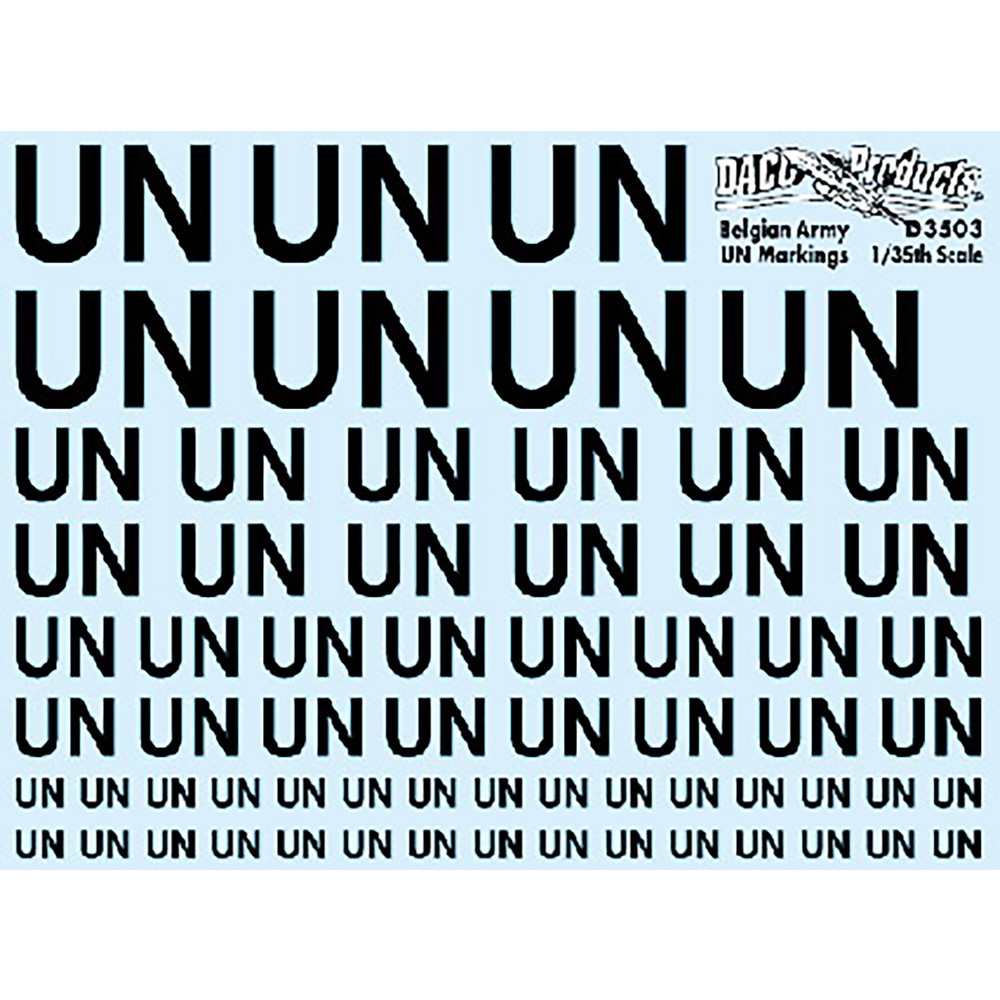 このセットではベルギー軍が国連の平和維持活動などに参加して活動する車両に表記する「UN」の文字を収録しています。各種サイ