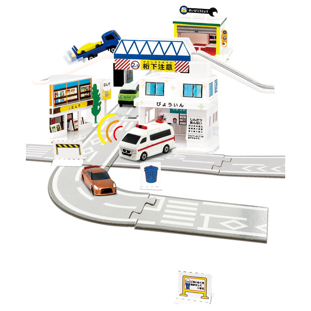 病院や本屋などの、建物や車・道路カードをつなげて君だけのオリジナルタウンを作ってみよう!さらにダイハツ キャストが新金型で仲間入り!!