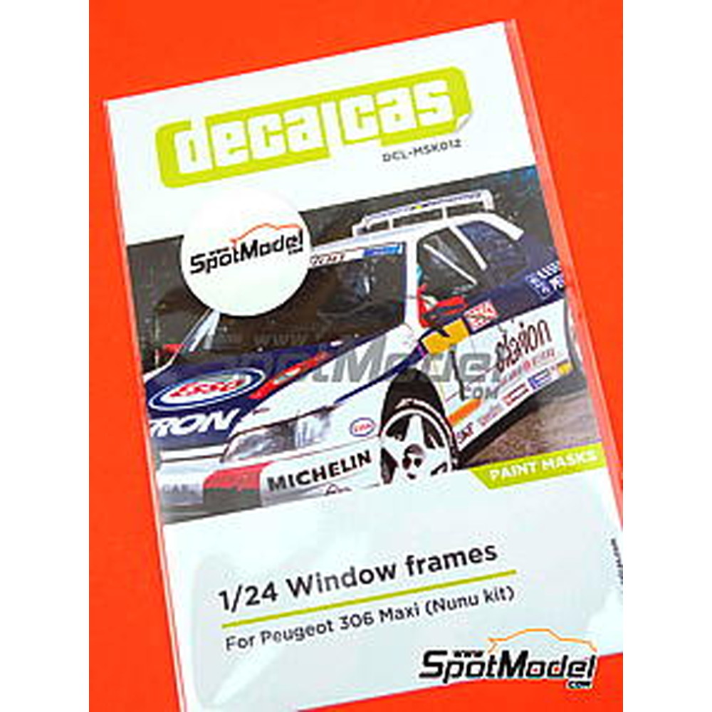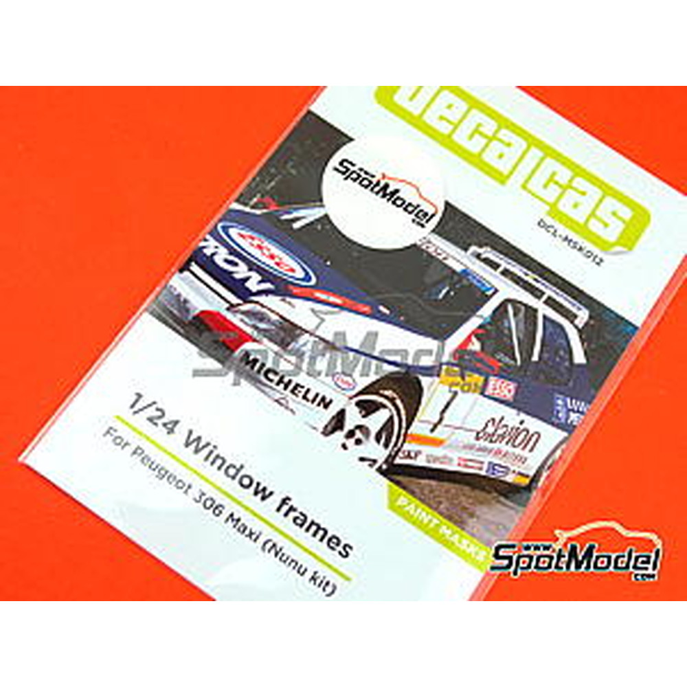 このセットはプラッツ/ヌヌ1/24スケール、プジョー306マキシ1996モンテカルロラリーのモデル(PN24009)に対応したマスキングシートのセットです。