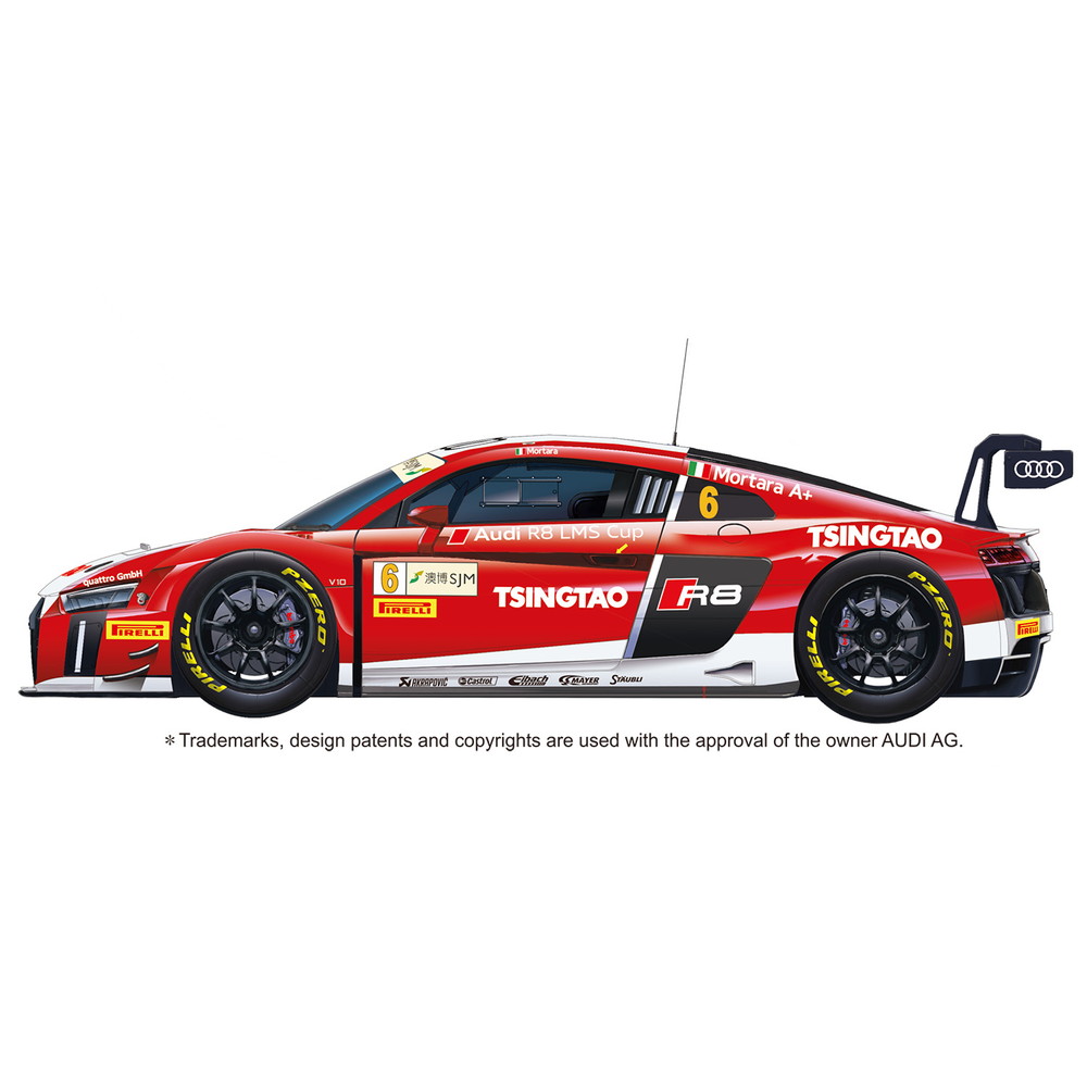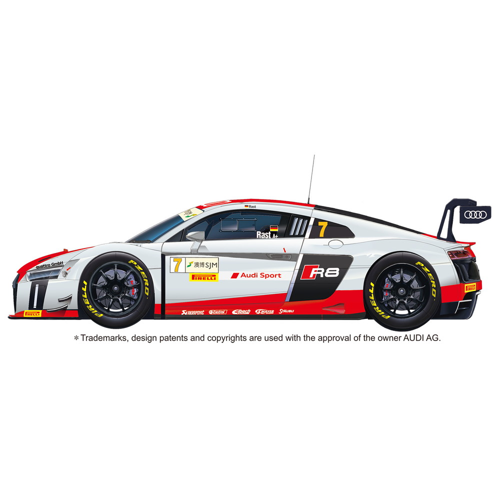 This is a 1/24 scale unpainted assembly Plastic Model Kit that reproduces the Audi R8 LMS GT3 in the 2015 Macau Grand Prix.