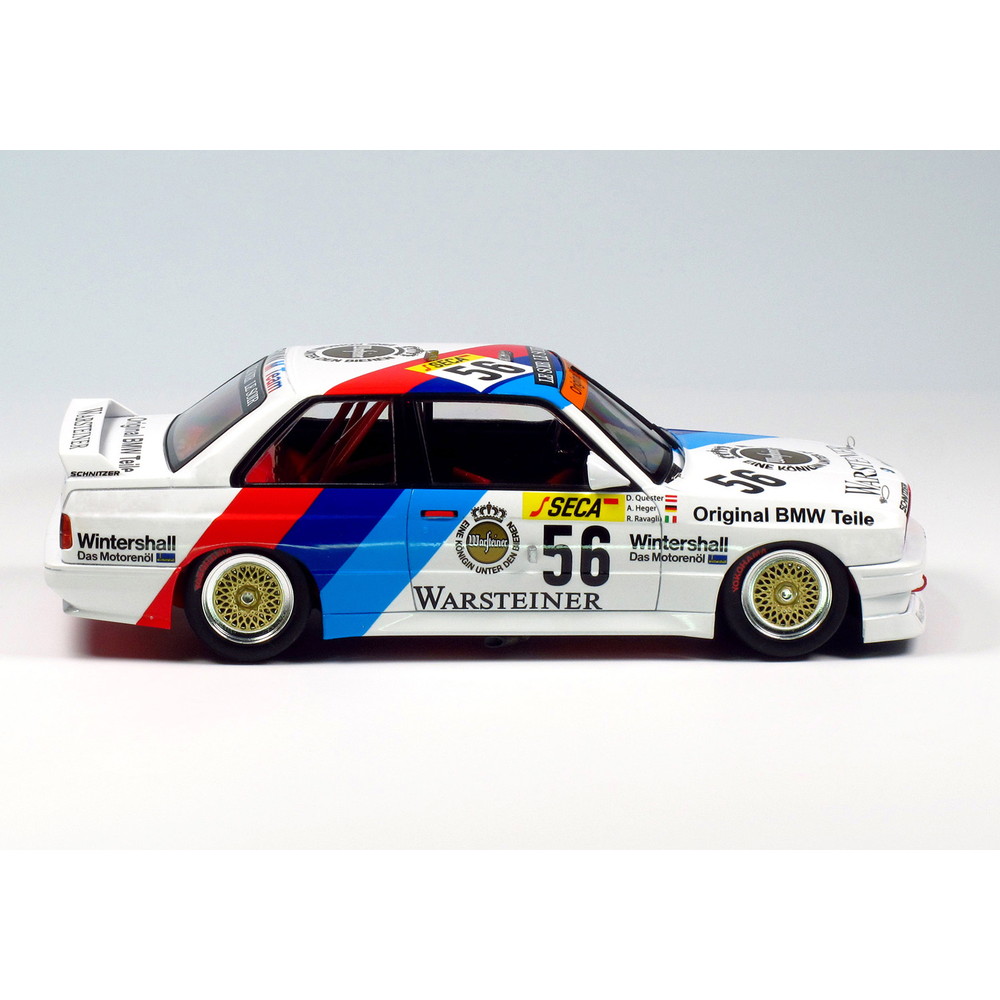 This is a 1/24 scale unpainted assembly plastic model kit that reproduces the BMW M3 E30 which won the 1988 SPA 24 Hours.