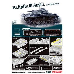 60口径5cm戦車砲を搭載したL型の後期生産型をモデル化しています。仕上がり全長約8.5cm全幅約4cmの手のひらサイズで全容を再現しています。このキットでは自然なたるみやダメージ再現も手軽にできる一部一体のNEOトラックを採用。
