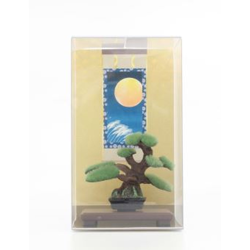 松の盆栽は、真柏の盆栽と並んで日本の盆栽界の主流の1つです。この松の盆栽と掛軸を合わせました。多くのファンを持ちながら製品化されていない新ジャンルの製品です。ぜひ品ぞろえいただき拡販をお願いできればと存じます。