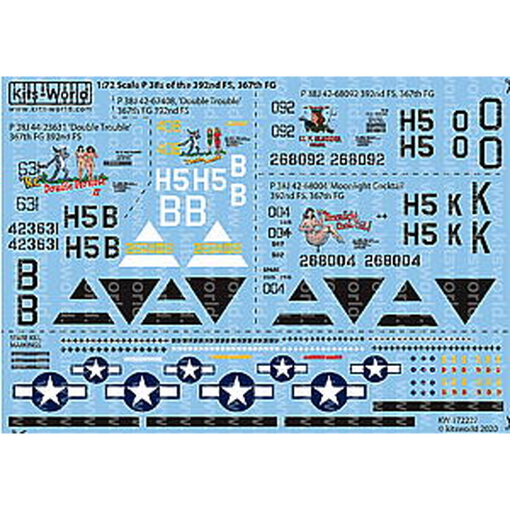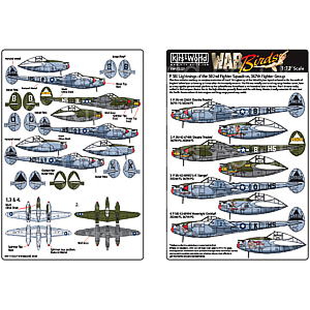 第二次大戦でアメリカが配備運用した双発の戦闘機、P-38ライトニングの1/72スケールモデルに対応したデカールのセットです。