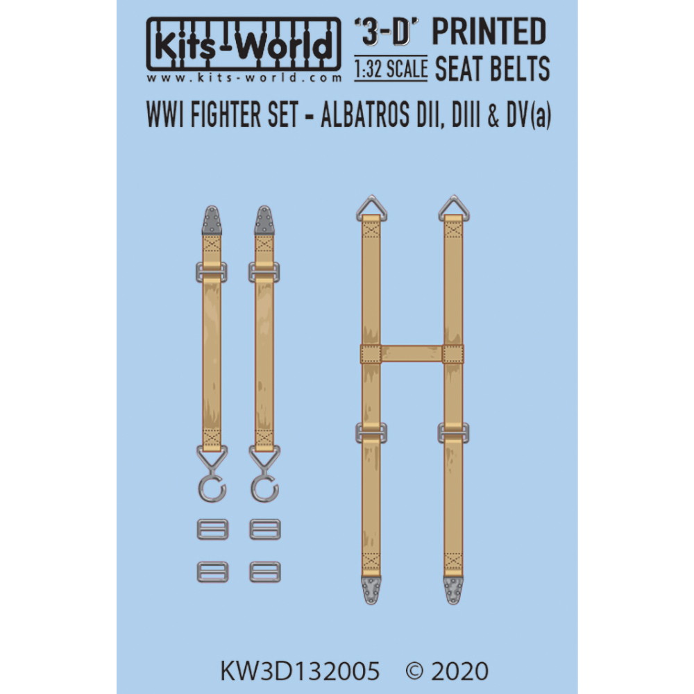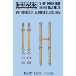 このセットでは第一次大戦のドイツ軍の名戦闘機、アルバトロスDII、DIII、DV(a)の1/32キット用シートベルトを再現しています。オープンタイプのコクピットを持つ機体だけに3Dシートベルトの使用が仕上がりの実感を高めます。