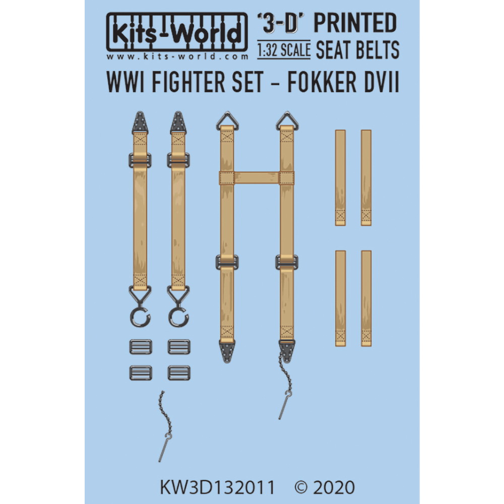 このセットでは第一次大戦のドイツ軍の名戦闘機、フォッカーDVIIの1/32キット用シートベルトを再現しています。オープンタイプのコクピットを持つ機体だけに3Dシートベルトの使用が仕上がりの実感を高めます。