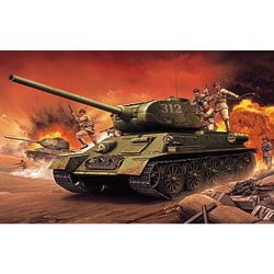 第二次大戦で活躍したソビエト軍のT-34/85とは異なるディテールを新規パーツやエッチングパーツなどを使って正確に再現。シャープなエッジが特徴の車体前面装甲を再現する新規パーツに、異なる形状を再現するフロントファンダーはエッチングパーツをセット。ホイールはスポークホイールデザインを採用したタイプをスライド金型を使った一体成型でモデル化。同じく一体成型で 再現されたアイドラーホイール、スプロケットホイール、さらに、履帯も細部まで精密に再現された一体パーツで組み立ても手軽です。