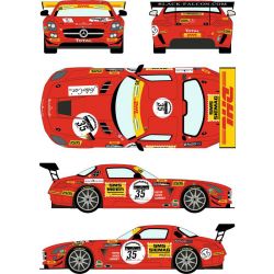 1/24メルセデスSLS GT3のキットに対応した デカールのセットです。 このセットでは2011年にベルギーのスパ・フラン コルシャンで行われた24時間レースに出場した ブラック・ファルコン・レーシングチームのメルセデス SLS GT3、カーNo.35のマーキングを収録して います。 ケネス・ヘイヤー、ステファン・レメレット、トーマス・ イェーガーの3名がドライブを担当、予選19番手 からスタートし、決勝ではトップから10ラップ 遅れの3位に見事入賞したマシンです。 ボディに描かれたDHLなどのスポンサーロゴを はじめ、ゼッケンなどもしっかりと収録しています。 メルセデスSLS GT3のボディをカラフルに彩る 魅力のデカールです。