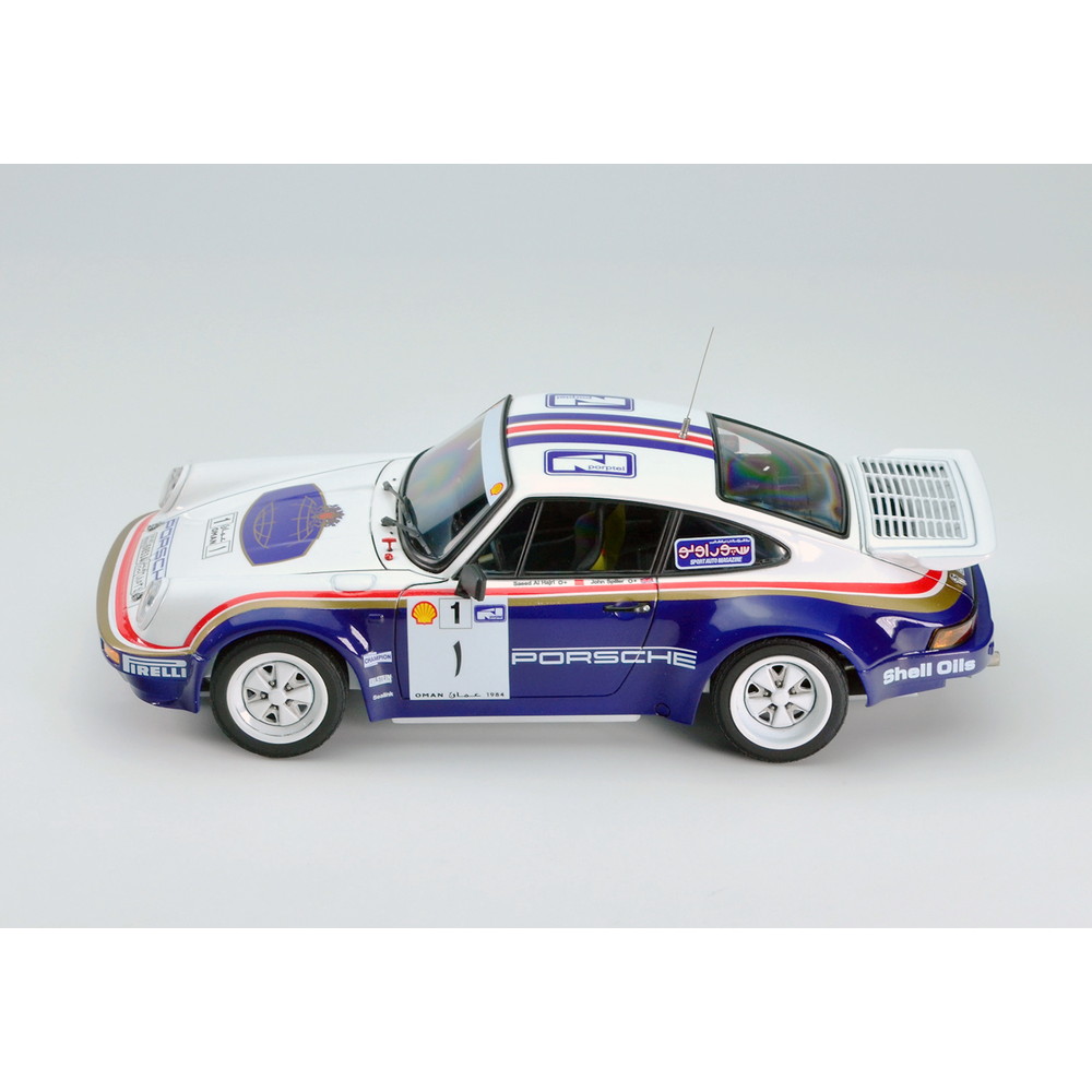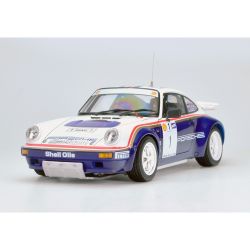 It is a plastic model assembly kit that reproduces the Porsche 911 SC RS, the Porsche's rally car developed to fit with the Group B regulations in 1984.