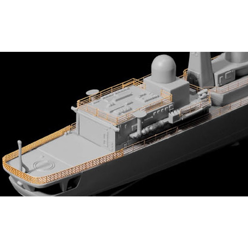 艦の形状はもちろん、艦橋やマストなどの上部構造物のデリケートなディテールも繊細にモデル化。甲板に設置されたミサイルや114mm砲の砲塔などもしっかりとモデル化され、甲板のディテールを立体的に演出します。また、各部のディテールをいっそうシャープに引き立てるアンテナや手すりなどのエッチングパーツもセット。さらに、キットには艦載ヘリコプター、ウエストランド・リンクスもモデル化されています。マーキングは各艦を再現するための番号をカルトグラフデカールで用意。仕上がり全長20cm弱でイギリス海軍の歴史を刻んだ駆逐艦をコレクションしてください。