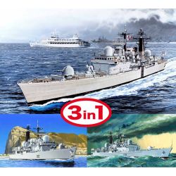 モデルは、1/700スケールでイギリス海軍が70年代から2000年代にかけて配備、運用したミサイル駆逐艦、H.M.S.42型駆逐艦を再現したプラスチックモデル組立キットです。