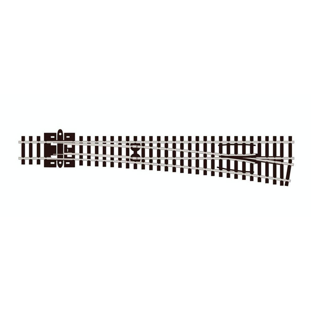 鉄道のレイアウトに欠かせないNゲージ(コード80)用のポイントです。フログ部分を導電式としたエレクトロフログタイプなのが特徴。ポイント通過時も給電が途切れることなく、スロー走行も安定しています。直線からの右開き分岐タイプ。