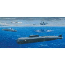 モデルはイギリスが建造、運用したH.M.S.トラファルガーとソビエトの原子力潜水艦オスカー級の2隻を1/700スケールで再現したプラスチックモデル組み立てキットのセットです。