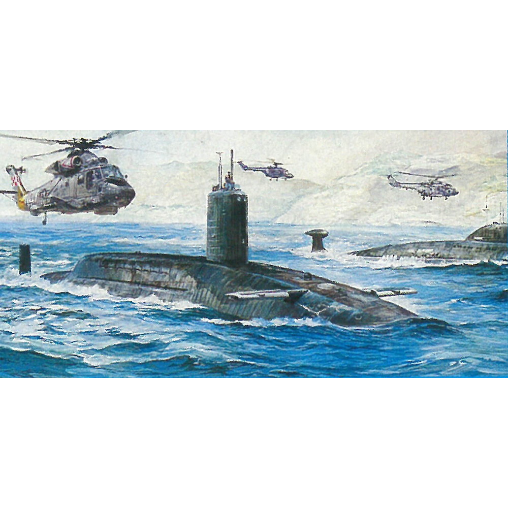 モデルはイギリスが建造、運用した原子力潜水艦H.M.S.リヴェンジとソビエトの原子力潜水艦ヴィクター型の2隻を1/700スケールで再現したプラスチックモデル組み立てキットのセットです。