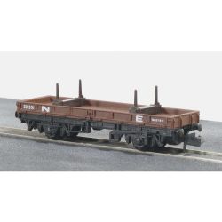 このモデルでは、前後に 2 基のボルスターを装備したタイプを再現。フラットな荷台はレールなどの長い貨物を積 むのに使用され、特に長いレールなどを積載する場合は複数車輌を連結して使用されまし た。イギリス国内の鉄道が国鉄に統合される前は各会社が資材の運搬用に独自に多くのボ ルスターワゴンを運用していたのです。荷台や台枠まわりもリアルに再現しています。 車軸は転がり抵抗の少ないピボット式。標準的なアーノルドタイプのカプラー付き。