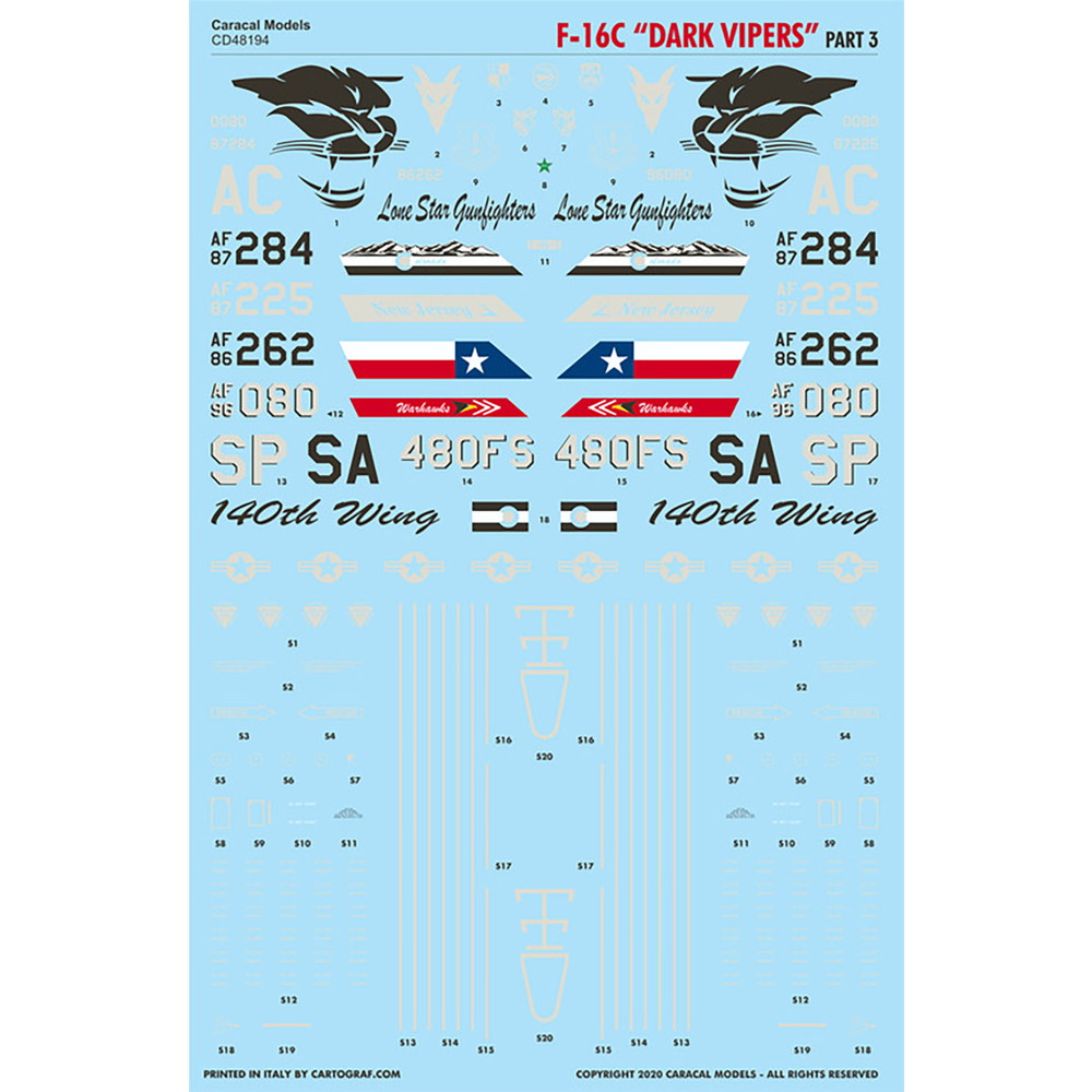 このセットはアメリカの傑作戦闘機として幅広く運用されているF-16Cの機体のマーキングを再現して