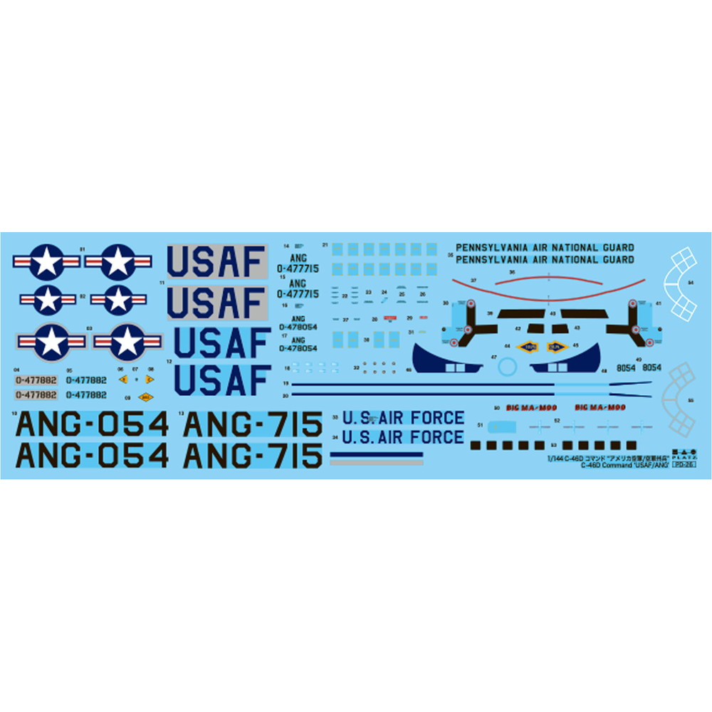 This is a 1/144 scale unpainted plastic model assembly kit for C-46 Commando “USAF/ANG”.