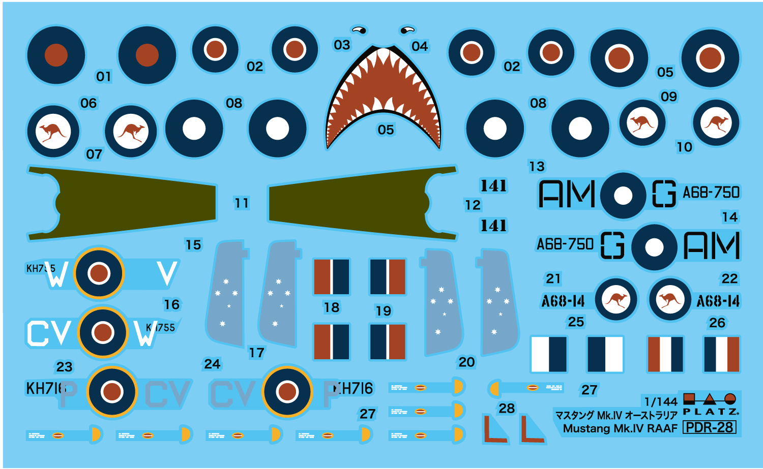 P-51D Mustang, evaluated as one of the best fighters of World War Ⅱ, was adopted by the RAF as Mustang Mk.IV and was widely operated in Commonwealth countries. It was also used in the RAAF from the war to the 1950s, and it became the foundation of the national air force. The RAAF during the war used the red/white/blue/ roundel of the RAF, but it was changed to a white/blue roundel to avoid being mistaken for Japanese hinomaru. In 1956, the kangaroo roundel was adopted and continue to the present.