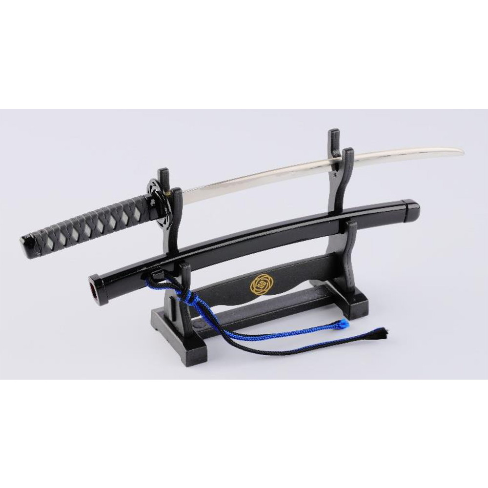 ・光沢のある黒鞘に、青と黒2色の下げ緒が特徴的。