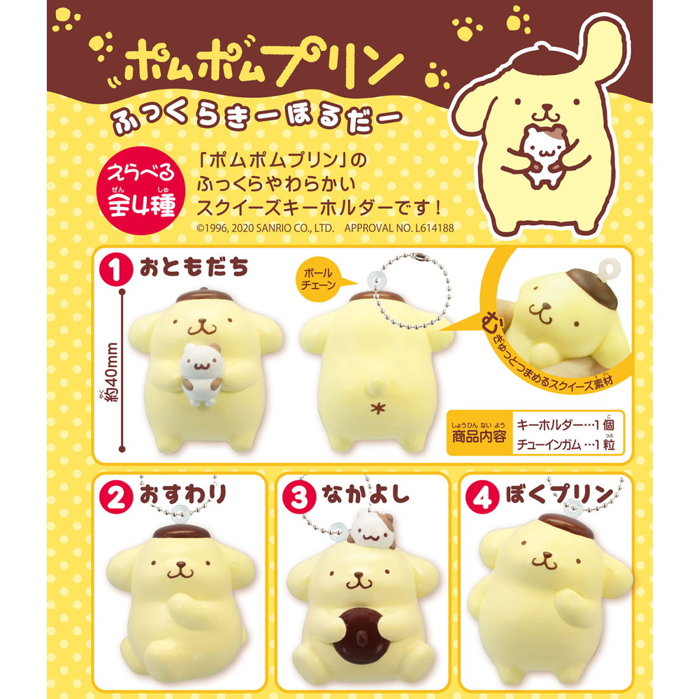 「ポムポムプリン」のふっくらやわらかいスクイーズキーホルダーです!
