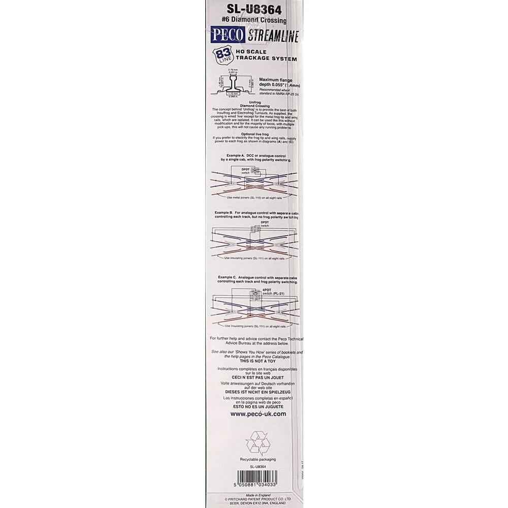 アメリカ型ファンにおなじみPECOのHOゲージ 83ライン(コード83)。なかでも汎用性の高い#6ポイント(左右)と、#6ダブルスリップ、