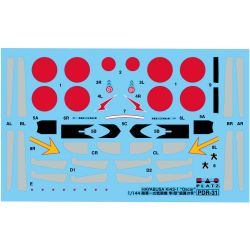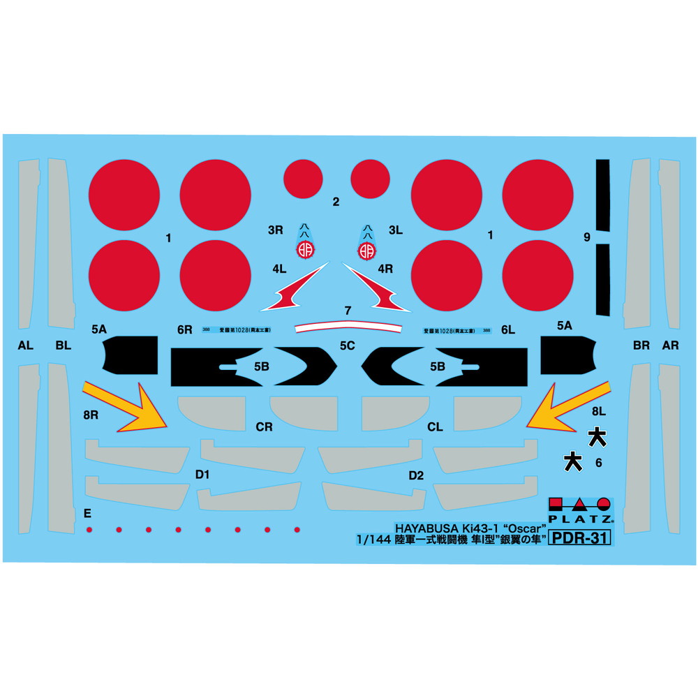 マーキングは飛行第64戦隊や明野陸軍飛行学校所属機など、4 種類のマーキングを収録。どの機体も塗装が施されていないナ チュラルメタルの機体のマーキングです。機首部分の防眩塗装や 灰緑色塗装が施された動翼部分、キャノピーの枠部分などはデ カールで用意されていますからパーツをシルバーに塗装した後、 デカールを貼って手軽に仕上げていただけます。