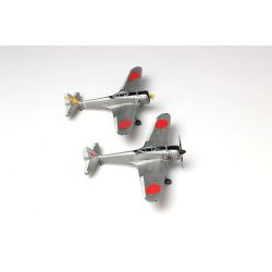 パーツはプラッツ製で2機分のパーツをセット。パーツ数も抑え て組み立てやすく、仕上がりは手のひらサイズです。作り揃えが 楽しみなキットです。