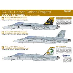 This is a 1/144 scale plastic model assembly kit of US Navy F/A-18C Hornet "Golden Dragons".
