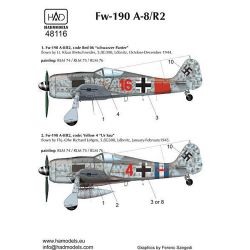 このセットは第二次大戦のドイツ軍戦闘機、 フォッケウルフFw190A-8/R2のマーキングを 収録しています。マーキングは2種類が収められ ています。