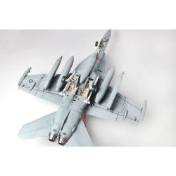 This is a model from the Platz/Italeri series, a collaboration item between Platz and ITALERI. This is an assembly plastic model kit for USAF Electronic Warfare Aircraft EA-18G Growler "VAQ-141 Shadow Hawks" in 1/48 scale. The finish is 38.1cm in length with high accuracy. Reproduce a characteristic form accurately. ITALERI's unique parts composition makes it easy to assemble. The kit also comes with a masking sheet to help you paint the canopy frame. The fuselage parts and other components are efficiently constructed for both ease of assembly and realism. Markings for VAQ-141 Shadowhawks, an electronic warfare strike squadron based at Iwakuni Air Base. The decals are made by Cartograf in Italy.