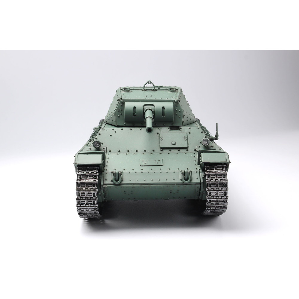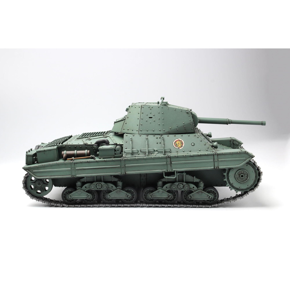 アンツィオ高校の秘密兵器、カルロアルマートP40型重戦車をモデル化しています。ソビエトのT-34戦車に触発され、 参考にデザインされたと言われる傾斜装甲を採用したフォルムはもちろん、車体各部に表現されたボルトの ディテールもリアルに再現され、仕上がりも力強い1台です。パーツはイタレリ製。カルロアルマートP40型はイタリアの戦車。