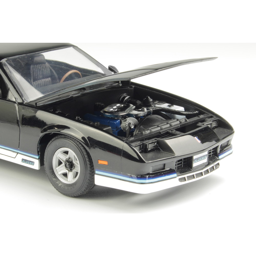 シャープなスタイルの第3世代カマロZ28のクーペボディを実感たっぷりに再現するほか、 ボンネットの下にはV型8気筒エンジンもセット。また、シャシーも立体感ある仕上がりが楽しめます。