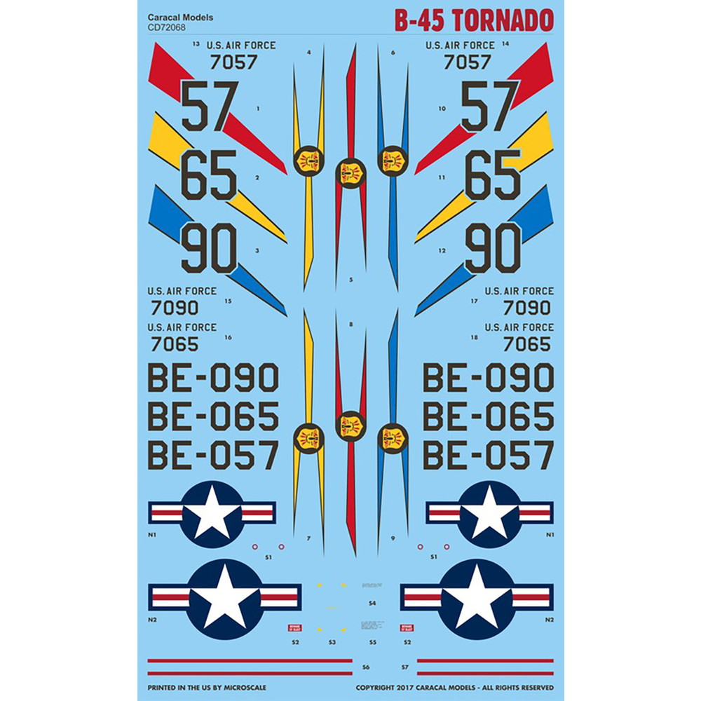 このセットはアメリカ軍が開発、戦後に運用したアメリカ空軍最初の ジェット爆撃機、B-45トーネードのマーキングを収録しています。