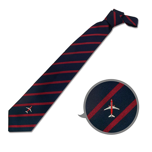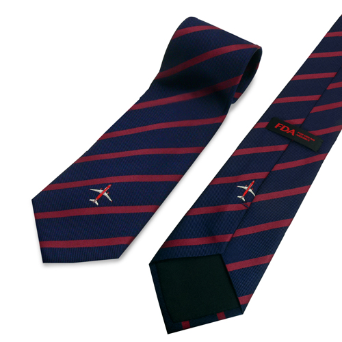 FDAの機体が胸元を彩るオリジナル・ネクタイ。シルク100%の生地をベースに、精巧な刺繍でFDA1号機(レッド)のディテールを表現。これまでにないレジメンタルストライプ柄のネクタイは、ビジネスシーンで活躍すること間違いなしです。
