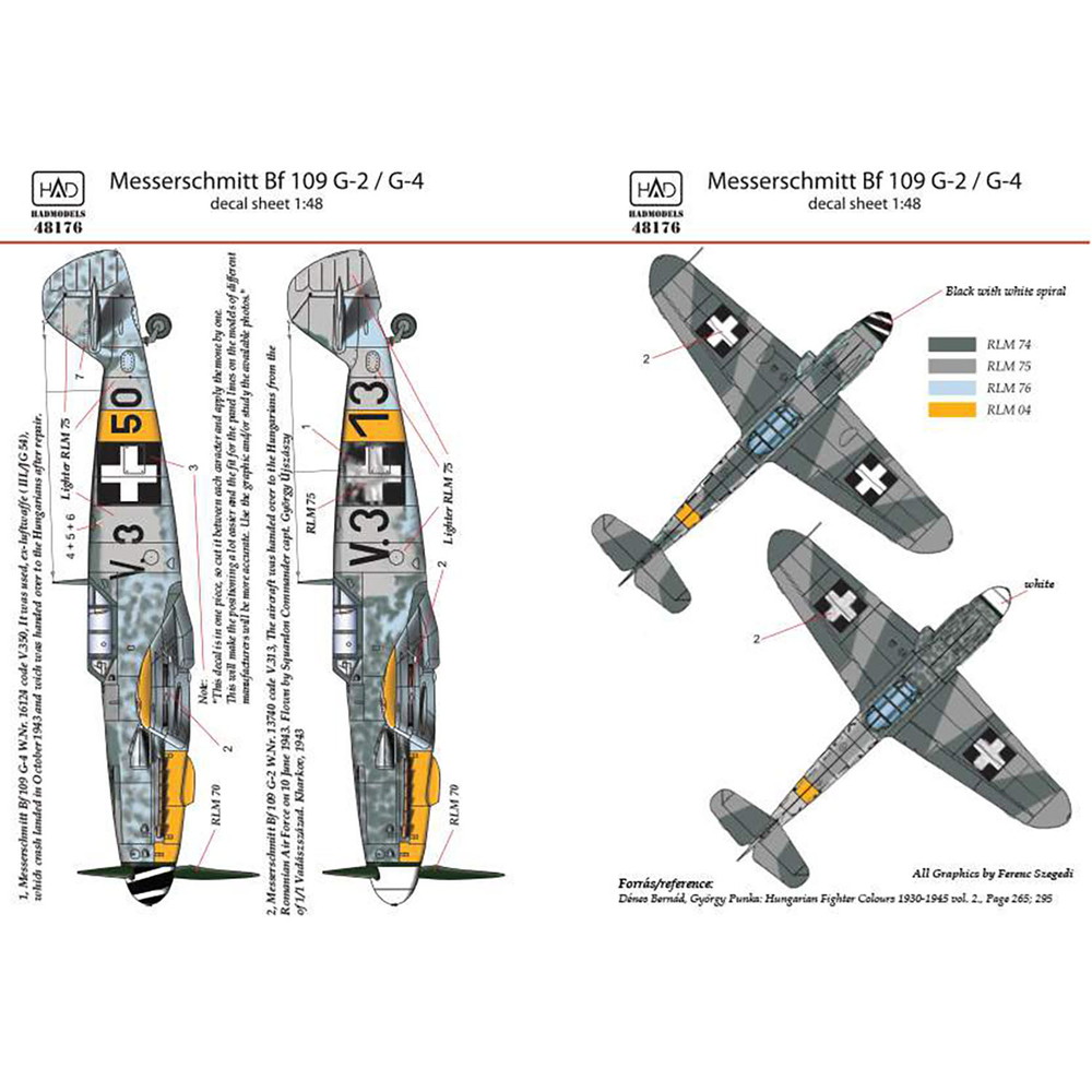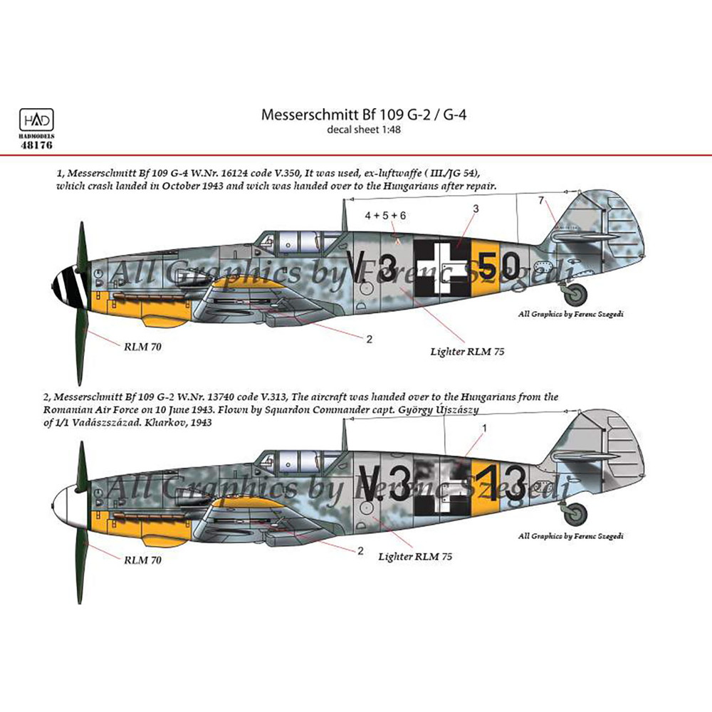 このセットはハンガリー空軍のメッサーシュミットBf109G-2/G-4のマーキングを収録しています。