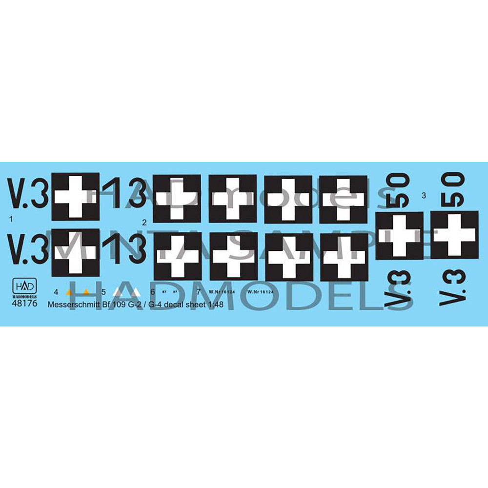 第二次大戦でハンガリー軍が運用したメッサーシュミットBf-109の1/48モデルに対応したデカールのセットです。