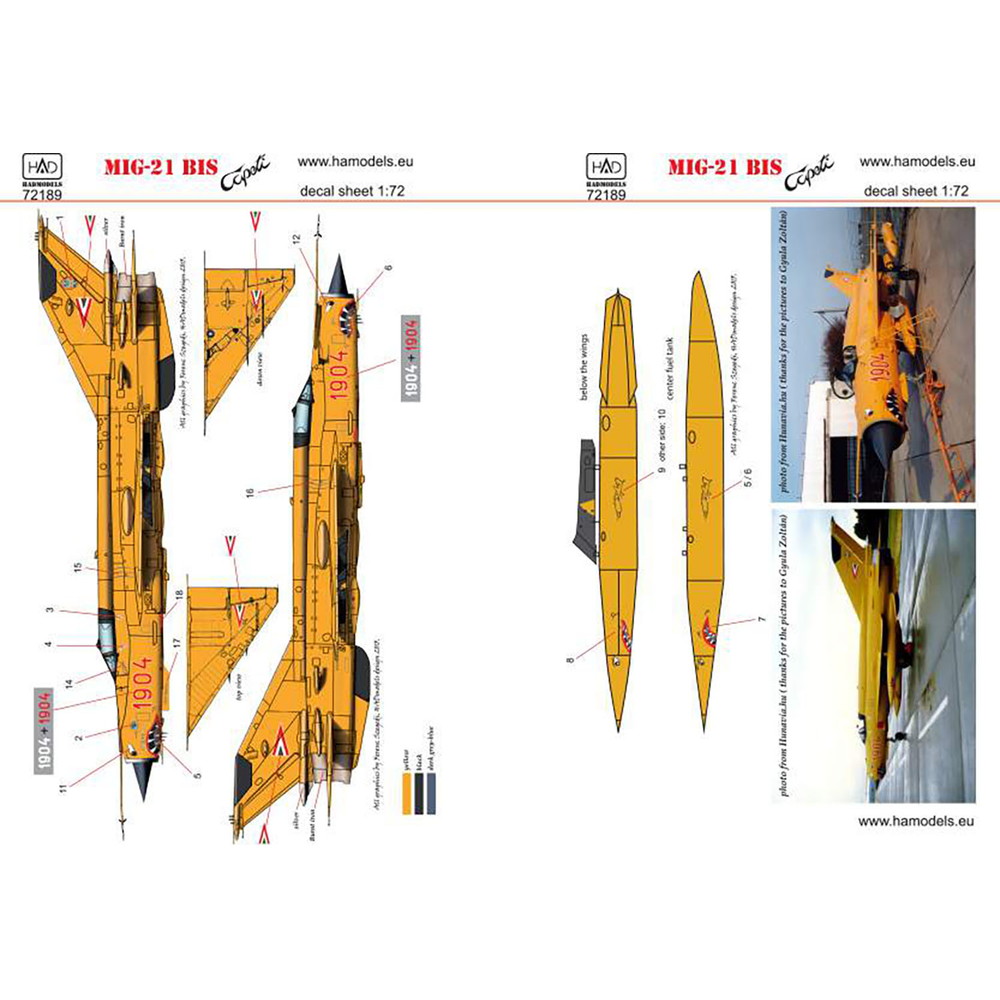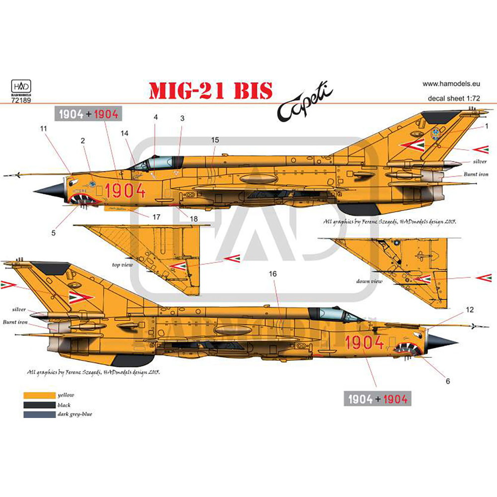 このセットはHADモデルが地元、ハンガリー空軍所属のMiG-21bisのマーキングを収録したデカールセットです。