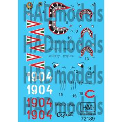 もちろん、国籍マークなどの基本マーキングはしっかりとセットされています。MiG-21の特別マーキングが楽しいデカールです。