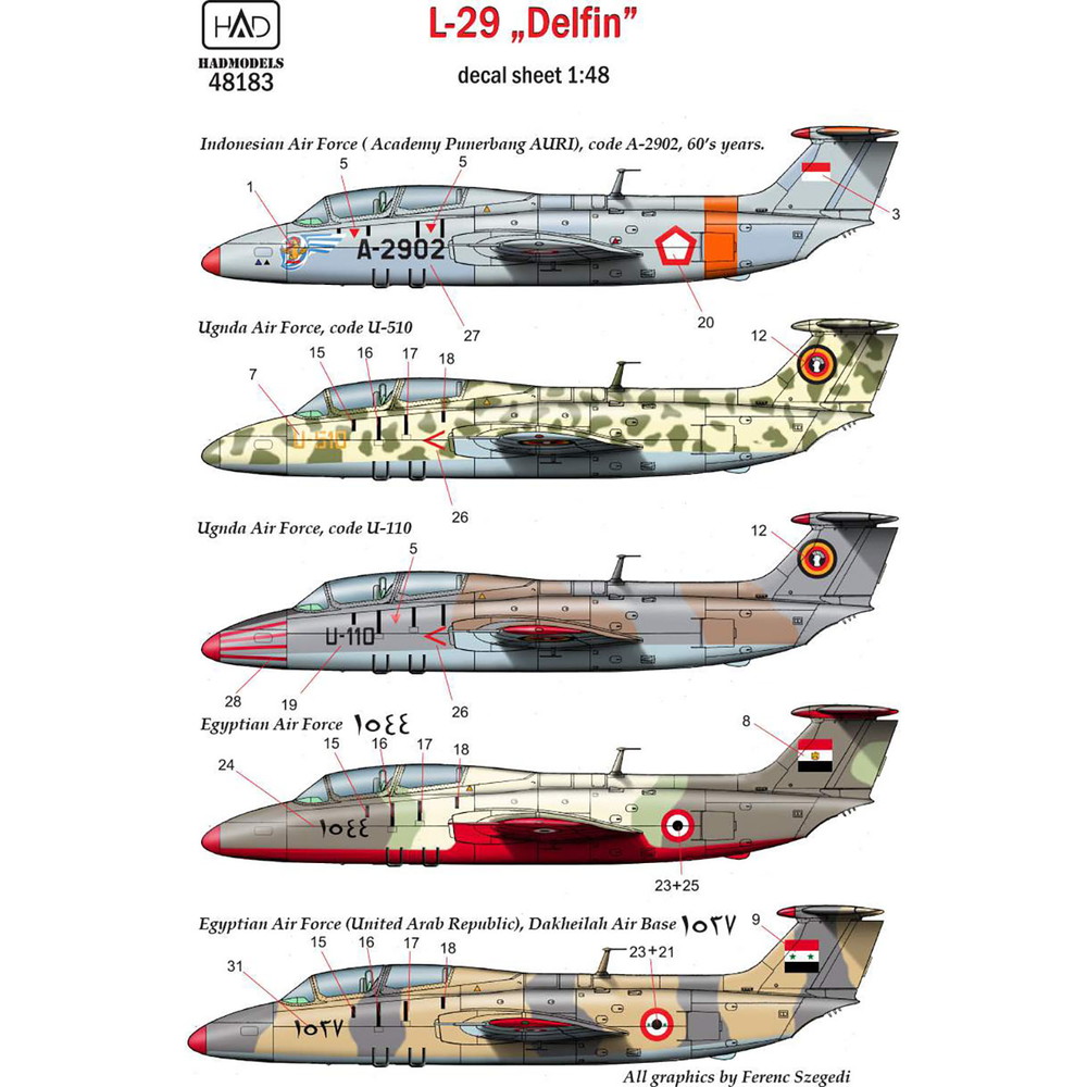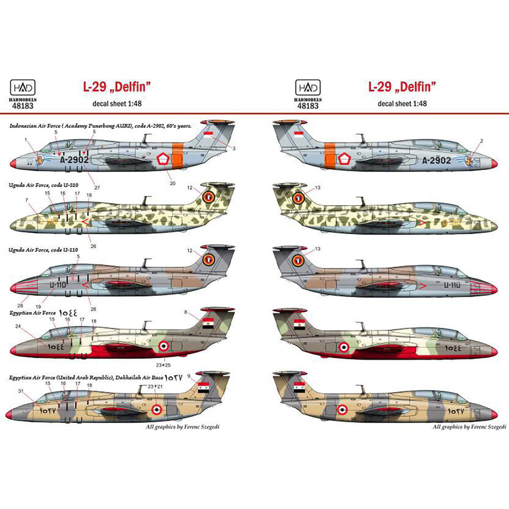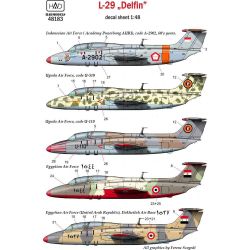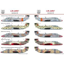 1/48スケールの練習機/軽攻撃機L-29デルフィーンのモデルに対応したデカールのセットです。