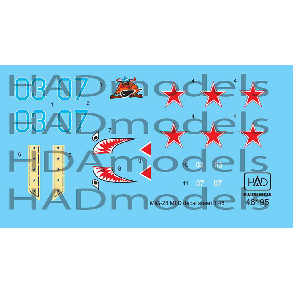 1/48スケールのMiG-23MLDのモデルに対応したデカールのセットです。